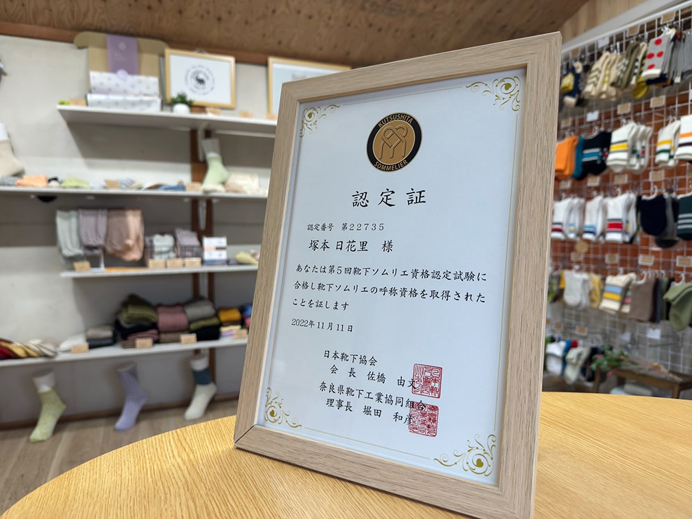 『靴下ソムリエ』とは、奈良県靴下工業協同組合による資格認定制度です。